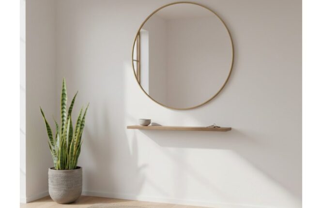 Iluminat natural și spațiu aerisit: Ferestre mari și luminoase, culori deschise, oglinzi plasate strategic.