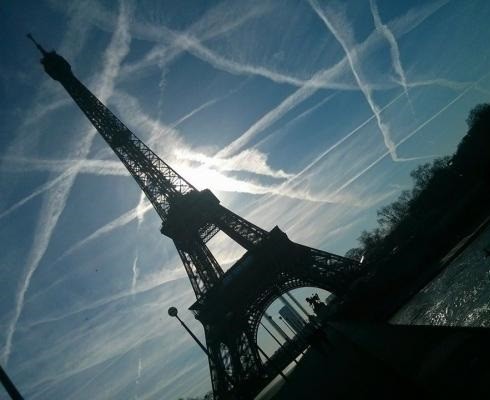 Intr-un mesaj video intitulat „Parisul se prabuseste”, jihadistii se folosesc de imagini dintr-un film de la Hollywood, in care se vede cum turnul Eiffel se inclina si cade la pamant.