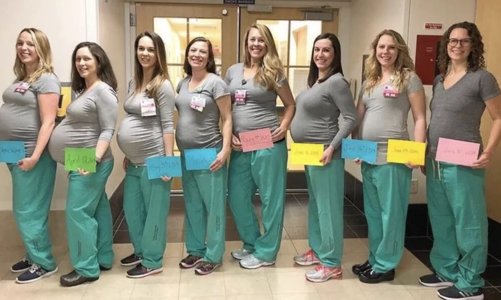 Într-un caz similar, anul trecut, alte 9 asistente medicale care lucrau în aceeași unitate la un spital au rămas însărcinate în același timp, într-o coincidență rară care, spun ele, le-a luat prin surprindere.