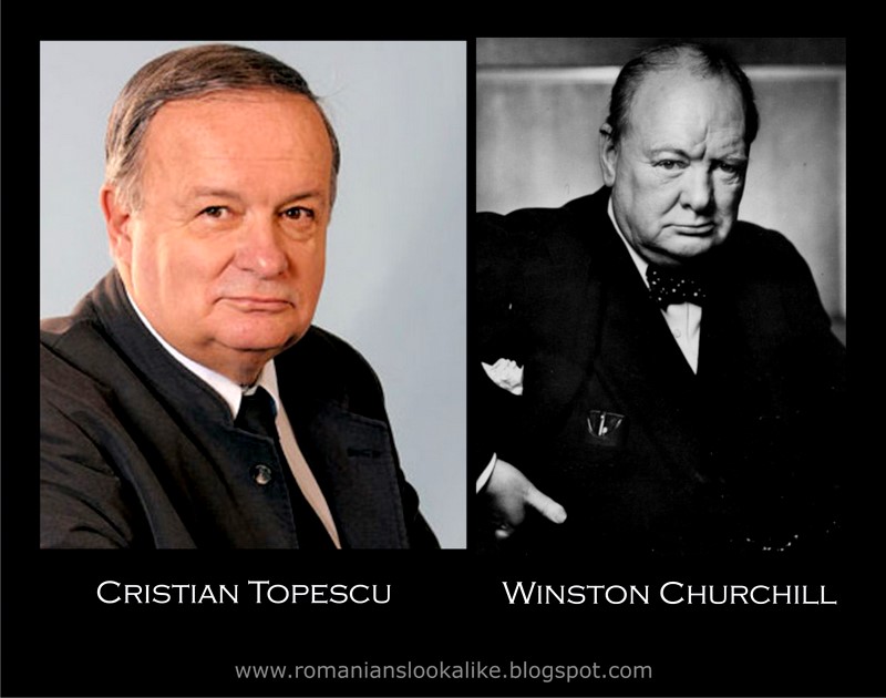 Comentatorul sportiv Cristian Topescu are o sosie pe măsura numelui care și l-a creat. Acesta seamănă izbitor cu Winston Churchill. ce doi se pare că au avut aceleași apsiuni, politica si literatura.