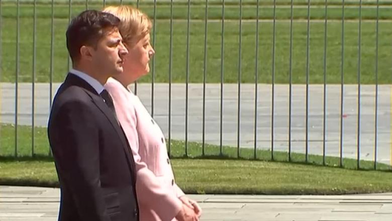 Cancelarul german Angela Merkel a început să tremure necontrolat în timpul ceremoniei de primire la Berlin a noului preşedinte al Ucrainei, Volodimir Zelenski.