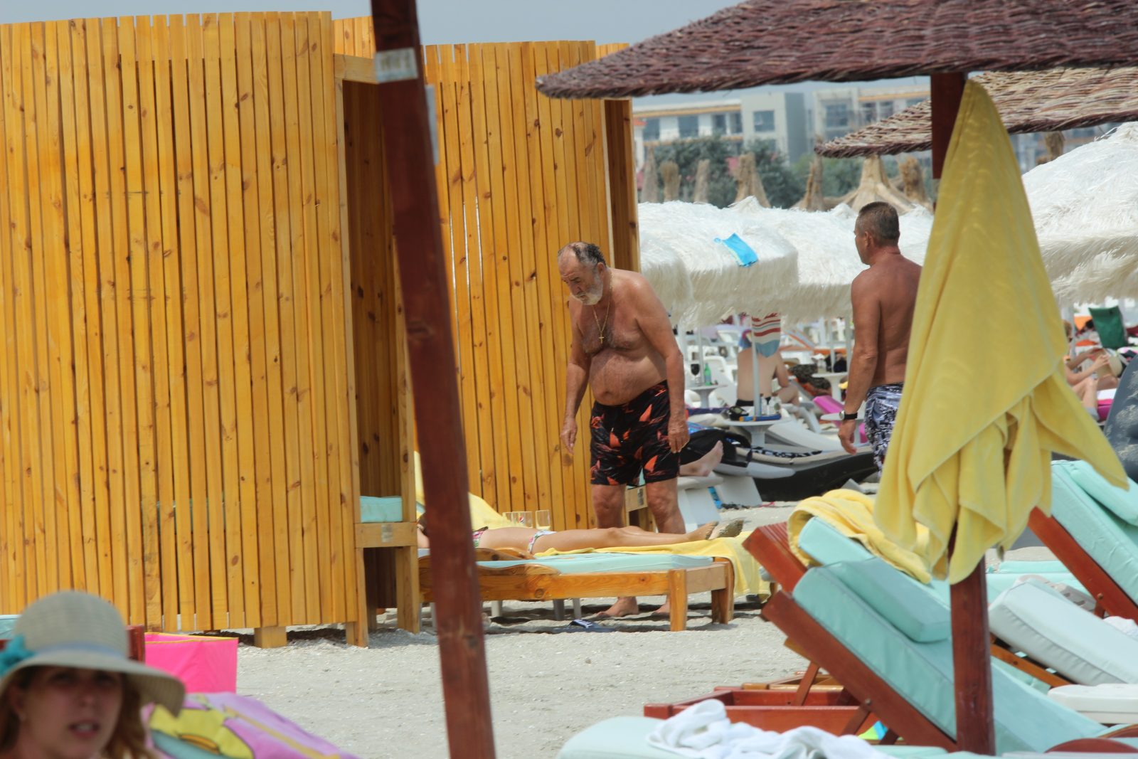 Sâmbătă, ora 17 când razele soarelui sunt destul de puternice, pe plaja din Mamaia și-a făcut apariția cel mai cunoscut dar și cel mai potent afacerist din România. Cu o avere evaluată la 1,2 miliarde de euro, Ion Țiriac ar putea sa-și bronzeze mușchii pe insule exotice și pe cele mai sofisticate plaje virgine, dar iată că el rămâne patriot convins și fidel plaiurilor mioritice. Dacă anul trecut s-a bronzat în Mamaia, în compania mulatrei Laurette Atindehou, iată că acum a schimbat macazul, și a preferat să se bucure de soare sub protecția gărzilor sale de corp.