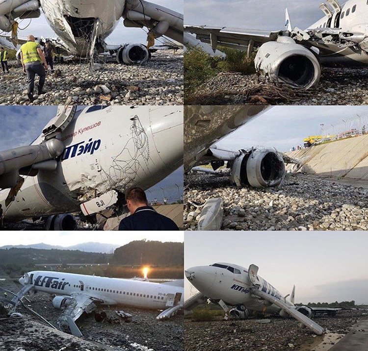 Imagini de la locul accidentului aviatic din Soci. Toţi cei de la bord au supravieţuit. 18 persoane au fost rănite, din care 4 grav. Un angajat al aeroportului A MURIT în urma unui infarct. Avionul UTair Boeing 737 a încercat să aterizeze pe o vreme foarte ploioasă şi a luat foc la impactul cu solul.