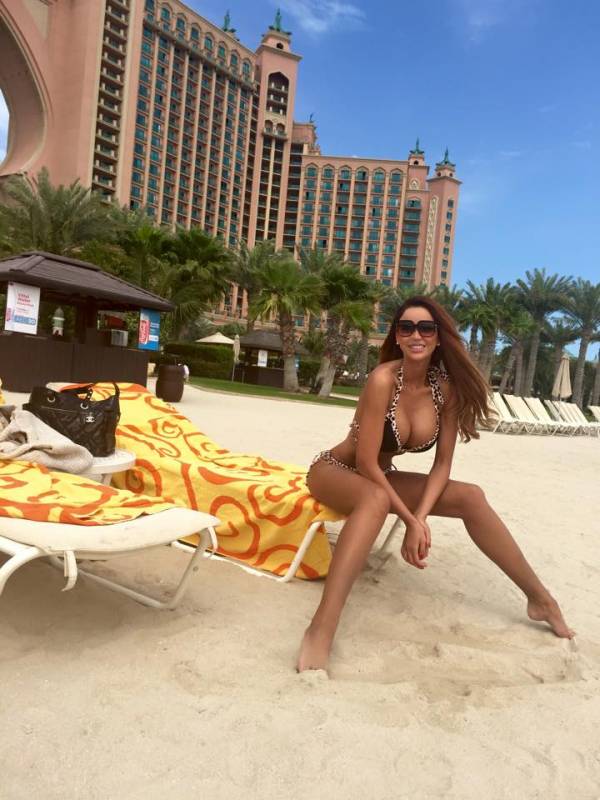 Talia subţire, picioarele lungi ca de gazelă uşor depărtate şi pielea arămie bronzată i-au pus toate atuurile în valoare, în special bustul, care pare mai proeminent ca niciodată.