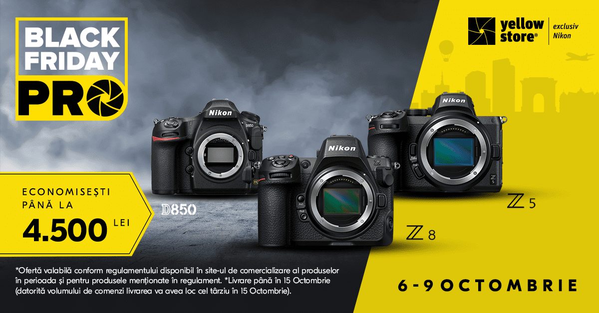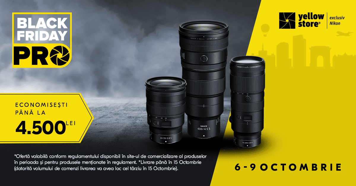 Fotografii profesioniști și pasionații de fotografie au acum o ocazie extraordinară de a-și îmbunătăți echipamentele și de a economisi, în același timp, datorită campaniei Black Friday PRO organizată de Yellow Store. Această campanie de neratat îți oferă reduceri de până la 4,500 de lei la o selecție impresionantă de produse Nikon, inclusiv cele mai recente modele și obiective de top din gama Mirrorless Z.