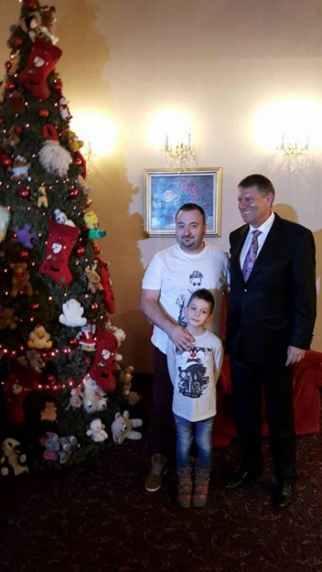 Mesajul este însoţit de două fotografii în care apare preşedintele Klaus Iohannis, alături de un băieţel şi de un alt bărbat.