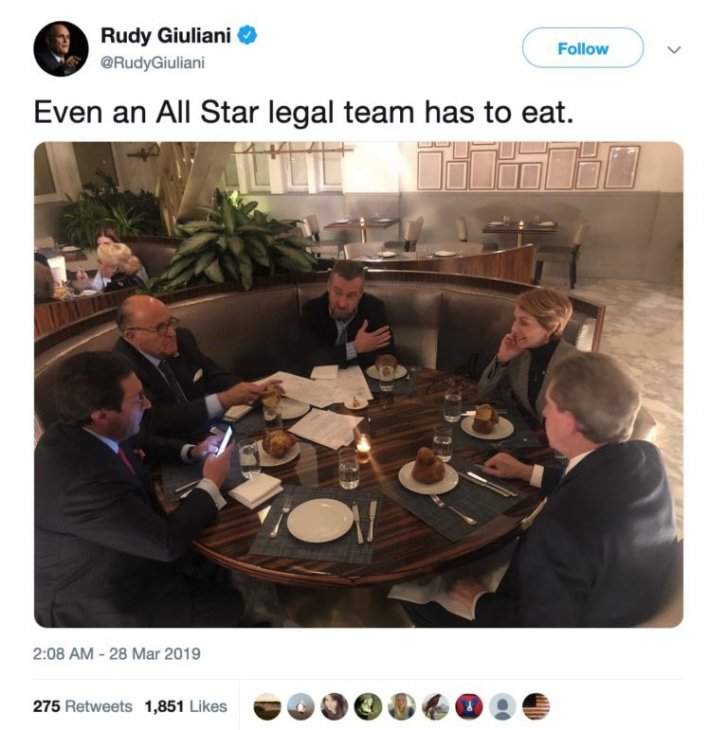 Fotografia în care apar Rudy Giuliani și Viorica, la mese alăturate, a fost postată pe Twitter la chiar de avocatul președintelui.