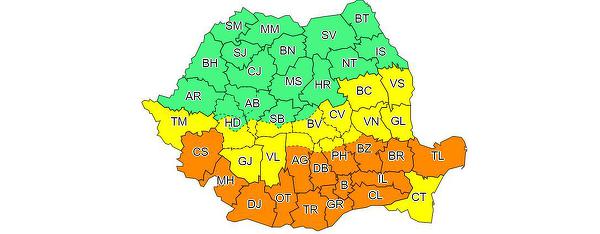 În intervalul 22 martie, ora 23 – 23 martie ora 15, este în vigoare un cod portocaliu de ninsoare abundentă strat de zăpadă consistent, temporar viscol şi vizibilitate scăzută, valabilă pentru 14 judeţe şi Capitala.
