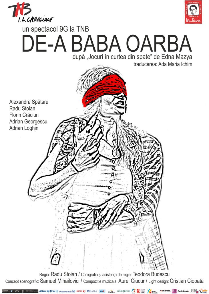 De-a baba oarba” este o reinterpretare a titlului “Jocuri în curtea din spate”, una dintre cele mai jucate piese ale Ednei Mazya. Scris în 1993 și pornind de la un caz real, care a afectat profund societatea israeliană, textul reconstituie drama lui Dvori Manhes, o fată de 14 ani și a unui grup de 4 adolescenți acuzați de viol. Totul pornește de la un joc, însă – ,,ca în orice joc” – nerespectarea regulilor poate duce oricând la pierderea controlului, având consecințe grave asupra tuturor participanților…
