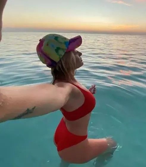 De data aceasta, Delia a purtat un costum de baie sexy, în timp ce se afla într-o vacanță. Ea și-a accesorizat ținuta printr-o șapcă cu un imprimeu viu colorat