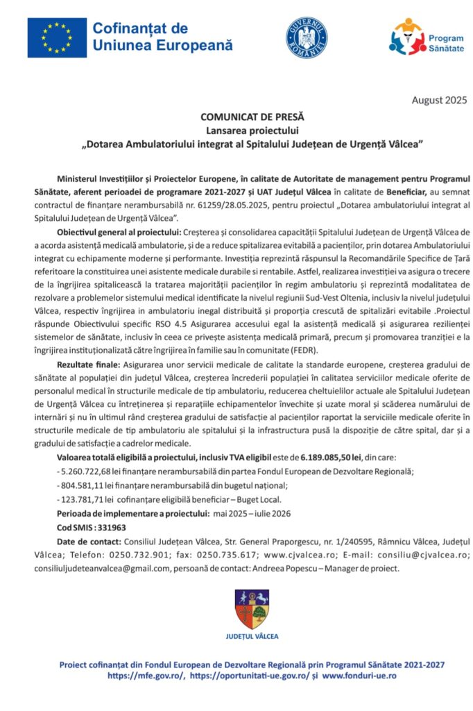 „Dotarea Ambulatoriului integrat al Spitalului Județean de Urgență Vâlcea”