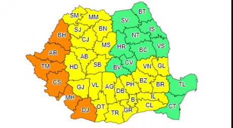 În județele Dolj, Mehedinți, Caraș-Severin, Timiș, Arad și Bihor, unde este în vigoare și vineri o avertizare de Cod Portocaliu, disconfortul termic va fi accentuat și se vor înregistra frecvent temperaturi maxime de 37…38 de grade și izolat 39 de grade.