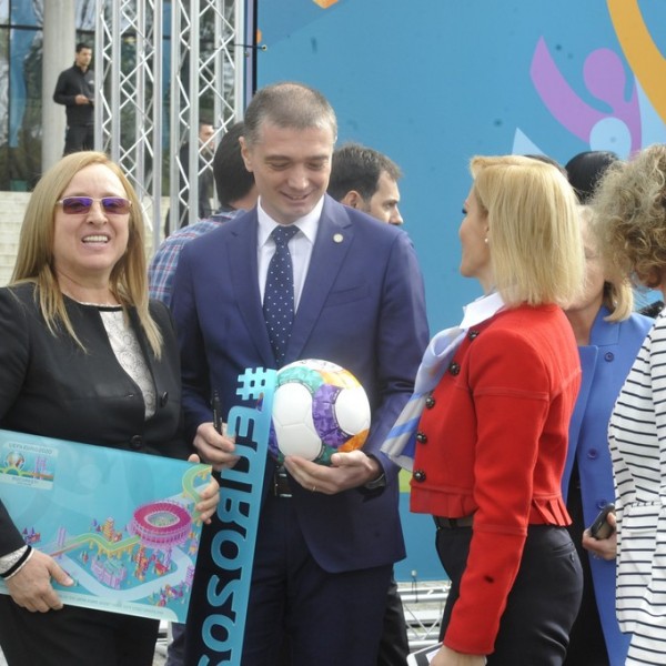 Odată cu lansarea logo-ului oraşului gazdă Bucureşti, va fi expus sâmbătă, între orele 12.00 şi 20:00, în faţa Arenei Naţionale, totemul Euro 2020 reprezentând o structura 3D al cărei element central este Cupa Henri Delaunay stilizată şi înconjurată de siluetele suporterilor de pretutindeni care celebrează bucuria fotbalului. Elementul de legătură este reprezentat de poduri celebre care conectează oraşele gazdă.