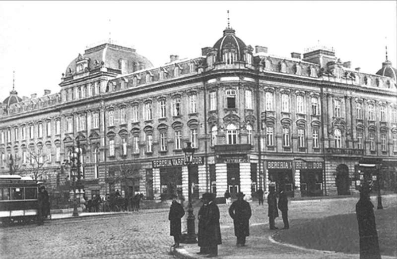 Locul e plin de istorie. Pe la 1820-1830, aici viețuia un han, transformat, apoi, înHotelul ”Damaris”. Tănăsache Eliad, om cu bani, îl dărâmă și saltă ”Hotel de France”, la 1855. Apoi devine ”Lafayette”. La 1912, Eugen Ghica îl cumpără, la licitație, cu 2,4 milioane de lei. Jos, la parter, se găsește Berăria ”Vârful cu Dor”,faimoasă în toată capitala. La cutremurul din 10 noiembrie 1940, este afectat serios, dar nu și refăcut complet.
