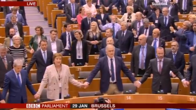La finalul votului, europarlamentarii au cântat melodia Auld Lang Syne, pe versurile poetului scoţian Robert Burns. La final, au aplaudat. După vot, preşedintele PE David Sassoli a declarat că europarlamentarii sunt profund întristați să vadă că Marea Britanie părăseşte UE.