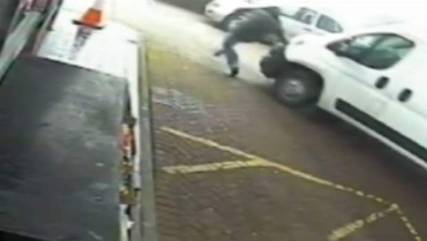 Scene incredibile au fost surprinse de o cameră de supraveghere într-o benzinărie din oraşul englez Rochdale. Un bărbat a fost lovit cu propria maşină de un hoţ care i-a furat autoturismul.