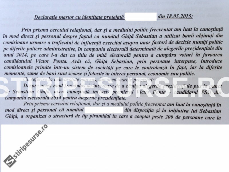 Site-ul stiripesurse.ro a prezentat, în exclusivitate, mărturia martorului cu identitate protejată pe care procurorii DNA își bazează acuzațiile în dosarul în care Sebastian Ghita fusese pus sub control judiciar.