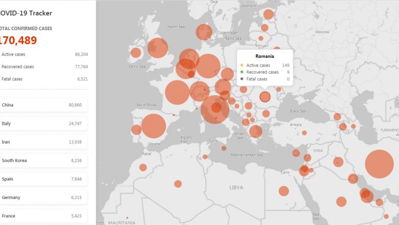 Harta arată numărul cazurilor din fiecare țară, precum și câte persoane s-au vindecat și câte au decedat. Informațiile sunt mai detaliate când vine vorba de statele americane.