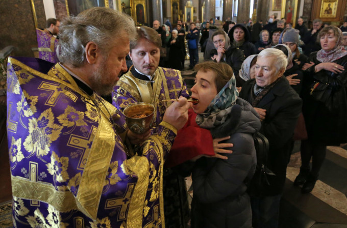 Zeci de enoriași, mulți dintre ei în vârstă, s-au îngrămădit în Catedrala Kazan din St Petersburg pentru a se împărtăși. Cu câteva zile înainte, responsabilii bisericii au fost criticați pentru că moaștele lui Ioan Botezătorul continuă să fie expuse, în ciuda temerilor că vizitatorii ar putea să răspândească virusul sărutând aceste relicve.
