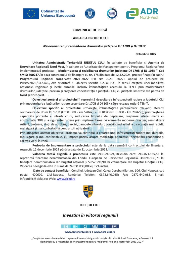 Actualitate, Comunicate de presa, comunicate fonduri europene Modernizarea și reabilitarea drumurilor județene DJ 170B și DJ 103K De: ExpressPress Data publicare articol: miercuri, 1 octombrie 2025, 8:42 ExpressPress Autor Alte știri din Actualitate: Polonia vrea 500.000 militari și rezerviști. România, de 5 ori mai puțini. Ce bani iau soldații profesioniști? sâmbătă, 17 ianuarie 2026, 15:42 Prognoza meteo, 17 ianuarie. Gerul se înăsprește în prima zi de weekend. O singură regiune va fi ocolită de temperaturile scăzute sâmbătă, 17 ianuarie 2026, 7:59 Cât va dura iarna în România. Meteorologii anunță cea mai lungă perioadă de frig din ultimii ani sâmbătă, 17 ianuarie 2026, 6:33