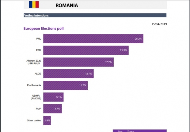În schimb, PSD s-a prăbușit. Conform estimărilor din aprilie, PSD înregistrează 21,5% și au căzut sub PNL. Se remarcă o diferență foarte mare față de luna martie, atunci când PSD era cotat la 29%. Practic, PSD a pierdut aproape 8% în câteva săptămâni. La acest scor PSD ar obține 8 mandate.
