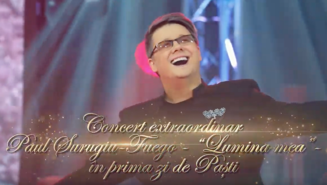 În prima zi de Paști, pe 19 aprilie 2020, în exclusivitate, la TVR 2, de la ora 15.00 la 18.00, timp de trei ore, puteți urmări o sărbătoare a muzicii. Este vorba despre concertul extraordinar pop-simfonic „LUMINA MEA”, susținut de turdeanul Paul Surugiu-Fuego pe 7 martie, pe scena Palatului Național din Chișinău.