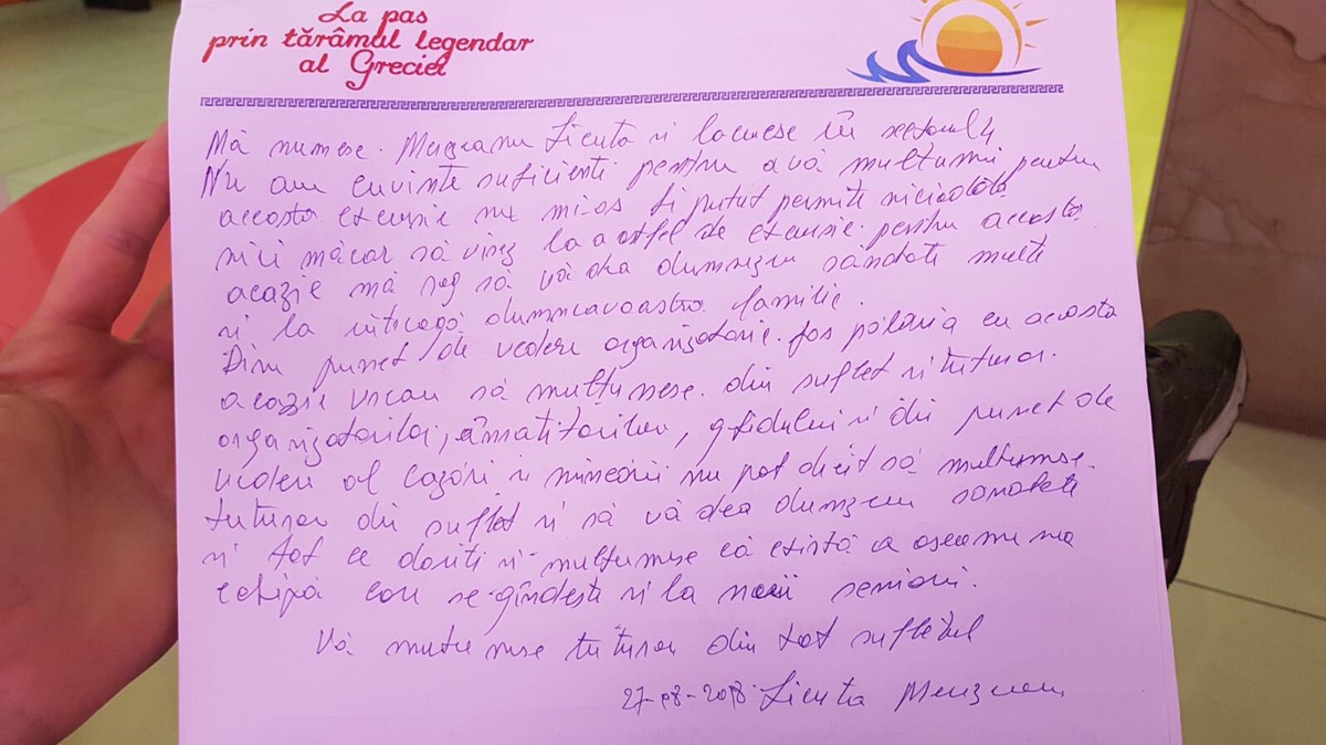 întors în țară din prima serie a taberei tematice cultural-educative “La pas prin tărâmul legendar al Greciei”. Precizam ca niciun beneficiar cu acest nume nu participa la prima serie a taberei tematice in cauza.