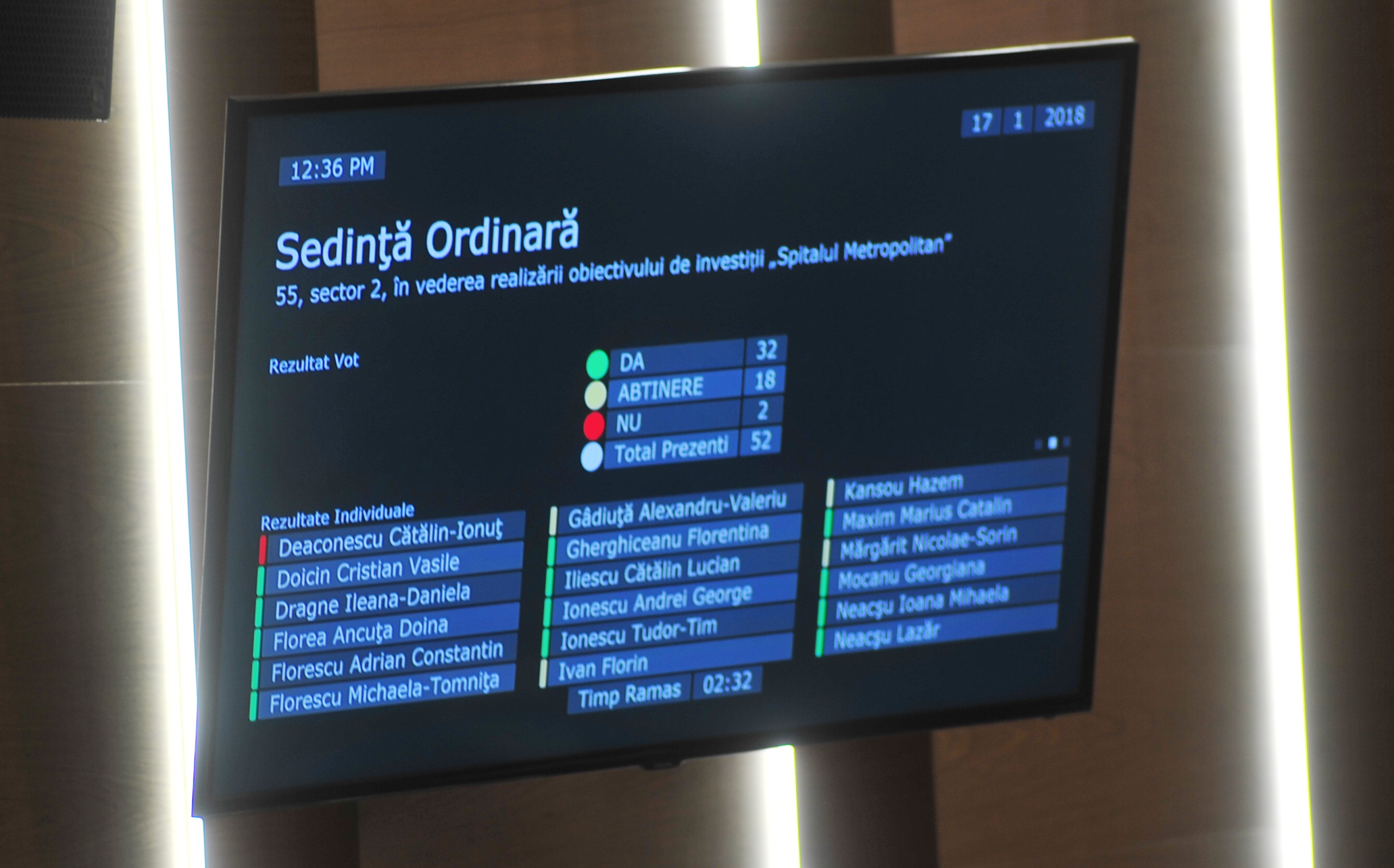 Proiectul de hotărâre privind preluarea în administrarea directă a Consiliului General al Municipiului București a imobilului din Șoseaua Pipera nr. 55, sector 2, în vederea realizării obiectivului de investiții „Spitalul Metropolitan”, a fost respins astazi, in Consiliul General, desi