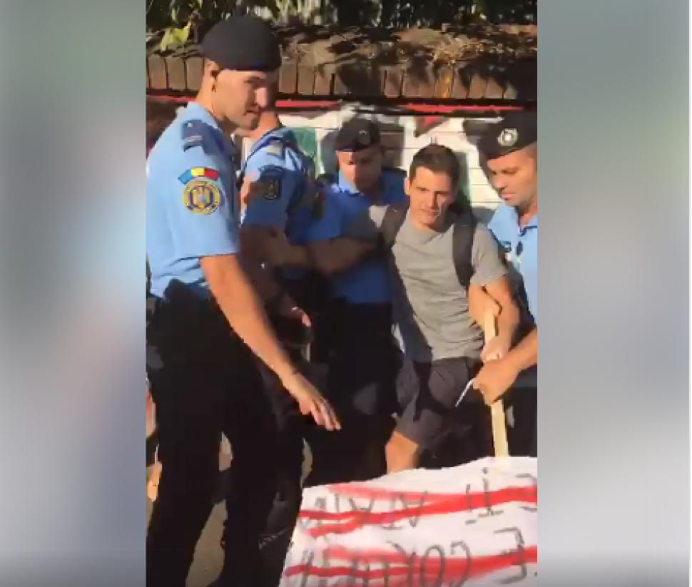 Protestatar care a fost ridicat cu forța de jandarmi din Piața Victoriei, la mitingul de sâmbătă, și amendat cu 300 de lei pentru injurii aduse forțelor de ordine, își asumă faptele și a precizat că i-a făcut pe jandarmi „sclavii lui Dragnea”.