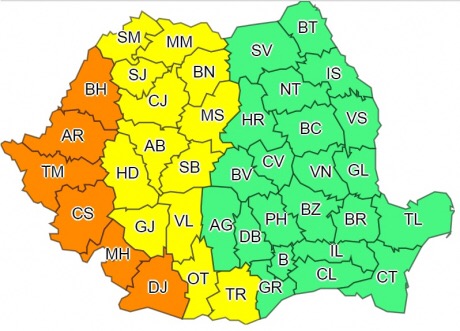 Administraţia Naţională de Meteorologie (ANM) a emis o atenţionare cod portocaliu de caniculă, valabilă joi pentru şase judeţe din vestul ţării. Se vor înregistra temperturi maxime de 39 de grade Celsius.