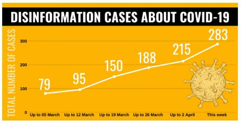 Numărul dezinformărilor despre Covid 19 e în continuă creştere. Foto: Captură euvsdisinfo.eu