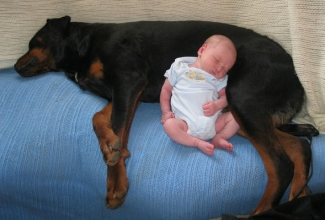 Nu degeaba cainii sunt numiti „cei mai buni prieteni ai omului”. Acest lucru se poate observa destul de simplu și din fotografiile urmatoare, Cainii au fost lasati pe posta de ”baby syter” iar afectiunea cainilor față de copil a surprins pe multă lume.