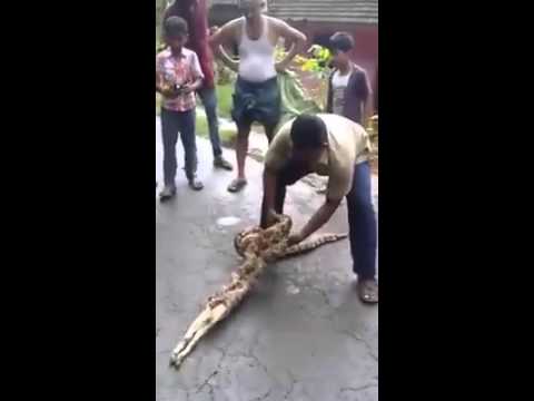 Oamenii au prins pitonul și au sărit să scoată ieduții ii din burta lui. Este neclar dacă oamenii mai sperau să salveze animalele sau doar să le extragă din șarpe pentru a le mânca.[youtube https://www.youtube.com/watch?v=I7WryN7mhDw]