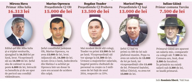 Actualitate Primarii și șefii de consilii județene și-au dat salarii cât al președintelui Klaus Iohannis. Top cinci edili cu lefuri de mii de euro Citește articol marți, 8 august 2017, 20:17 De: Cristina