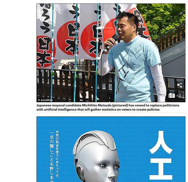 „În urmă cu 40 de ani, Tama New Town era cel mai avansat oraş din Japonia. În prezent, populaţia sa îmbătrânită va continua să crească, aducând de la sine nevoia schimbării actualei administraţii. Haideţi să lăsăm inteligenţa artificială să determine politicile, prin analizarea datelor municipale”, a declarat politicianul.