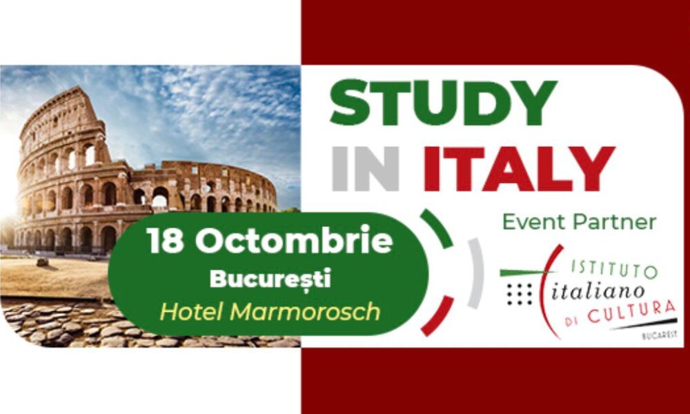 Evenimentul “Study in Italy” se desfășoară în premieră la București pe 18 octombrie. Universități de prestigiu vin să-și prezinte programele educaționale tinerilor români interesați să studieze în Italia.
