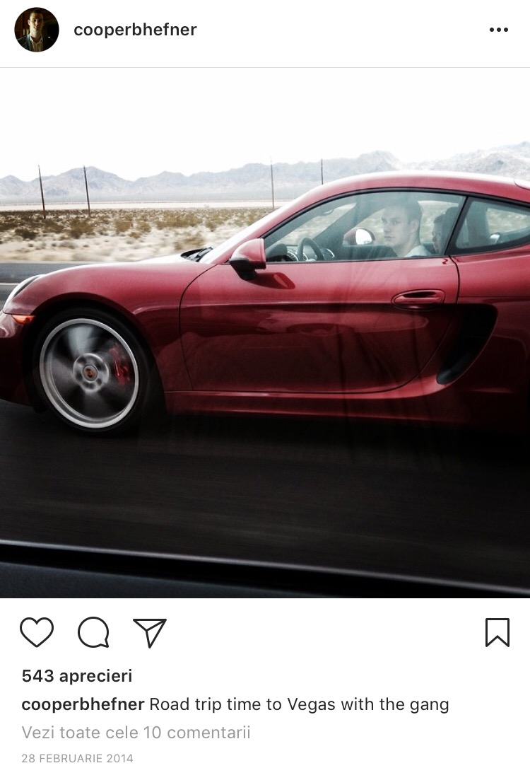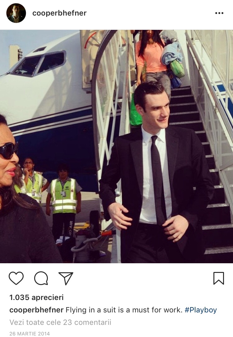 Acum, cel mai probabil, va moşteni o mare parte din averea tatălui său. Viaţa tânărului nu ducea lipsă de nimic oricum, permiţându-şi tot felul de extravaganţe: de la a zbura cu avionul privat în jurul lumii, până a se logodi cu actriţa din Harry Potter, Scarlett Byrne. Cooper Hefner a devenit repede o vedetă pe rețelele de socializare, cu 90.000 de urmăritori pe Instagram.